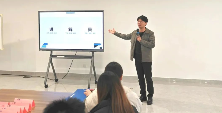启动仪式后,ag真人平台官方青年们参加《讲解员业务培训》。课程从讲解员的礼仪与表达出发,结合公司总部数字化展厅以及六个精益参观通道内容,通过现场模拟及指导的模式展开师生互动教学。现场氛围浓厚、欢快,培训得到了全体ag真人平台官方青年的一致好评。